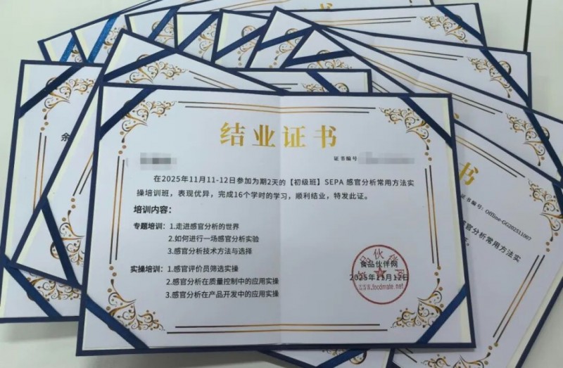 2025年11月11-12日,由食品伙伴網(wǎng)主辦的SEPA感官分析常用方法實(shí)操培訓(xùn)班(第七期)在濟(jì)南感官分析研究中心圓滿結(jié)班。來(lái)自浙江柏客健實(shí)業(yè)有限公司、天津頂益食品有限公司、愛(ài)普香料集團(tuán)股份有限公司等多家企事業(yè)單位學(xué)員參加了此次培訓(xùn)。大家齊聚泉城濟(jì)南,共同進(jìn)行感官充電!