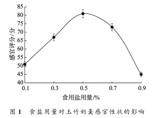 1.3 食鹽用量對玉竹奶羮風味的影響